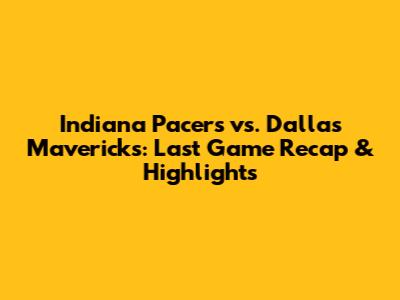 Pacers Vs. Mavericks: Last Game Recap & Highlights